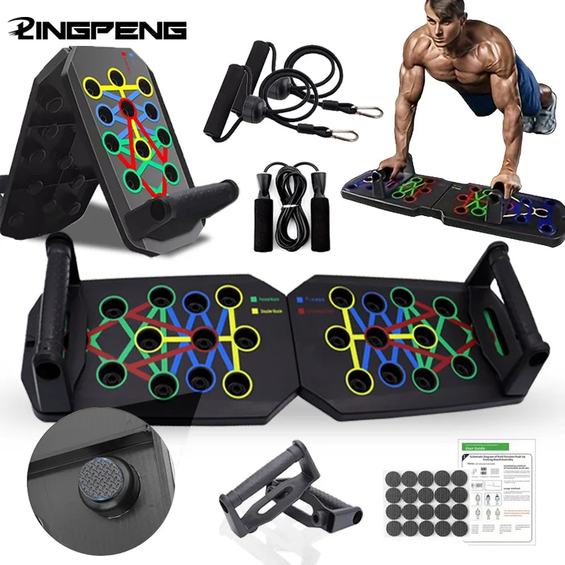 1. Different color-coded push plates focus on the muscles to be exercised.